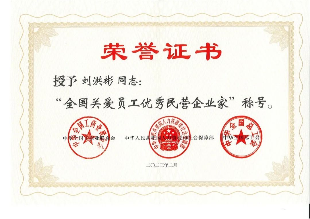 劉洪彬董事長(zhǎng)在山東分會(huì)場(chǎng)參會(huì)并受到表彰,獲得全國(guó)關(guān)愛員工優(yōu)秀民營(yíng)企業(yè)家稱號(hào)。