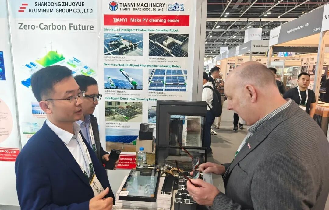 展位SS2 H85(鋁合金門窗及光伏儲能設(shè)備)緊扣綠色建筑與新能源主題,推出多元創(chuàng)新成果。鋁材方面,高耐候性鋁合金型材抗腐蝕、抗老化性能較好,適配多樣門窗系統(tǒng),密封性能優(yōu)良、開啟方式靈活,隔音隔熱且能提供舒適體驗;光伏儲能方面,自主研發(fā)的光伏清掃機(jī)器人可自動規(guī)劃路徑進(jìn)行光伏板清掃,模塊化儲能設(shè)備專為中東高溫環(huán)境優(yōu)化,能穩(wěn)定供能,配套充電樁技術(shù)可滿足多設(shè)備充電需求。